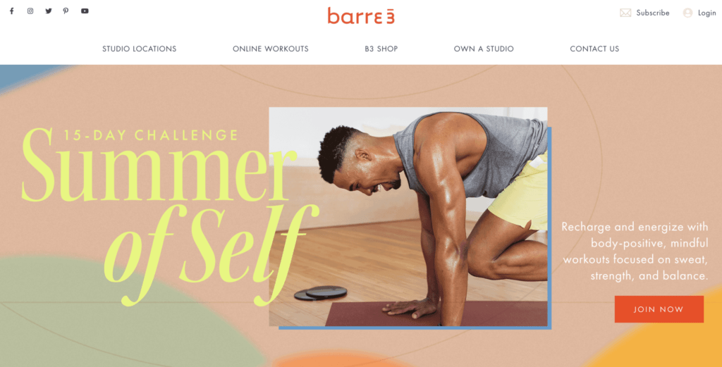 Barre3 has over 170 studios and an online platform in more than 98 countries. The balanced full-body workout is all about strength, cardio, and mindfulness. What’s different about this barre brand is they also incorporate wellness retreats and the B3 shop with purposeful products. Interestingly, they continue to widen the concept of barre into on-brand and profitable parts of the business. Barre3 focuses on inclusivity, community and celebrate body positivity.