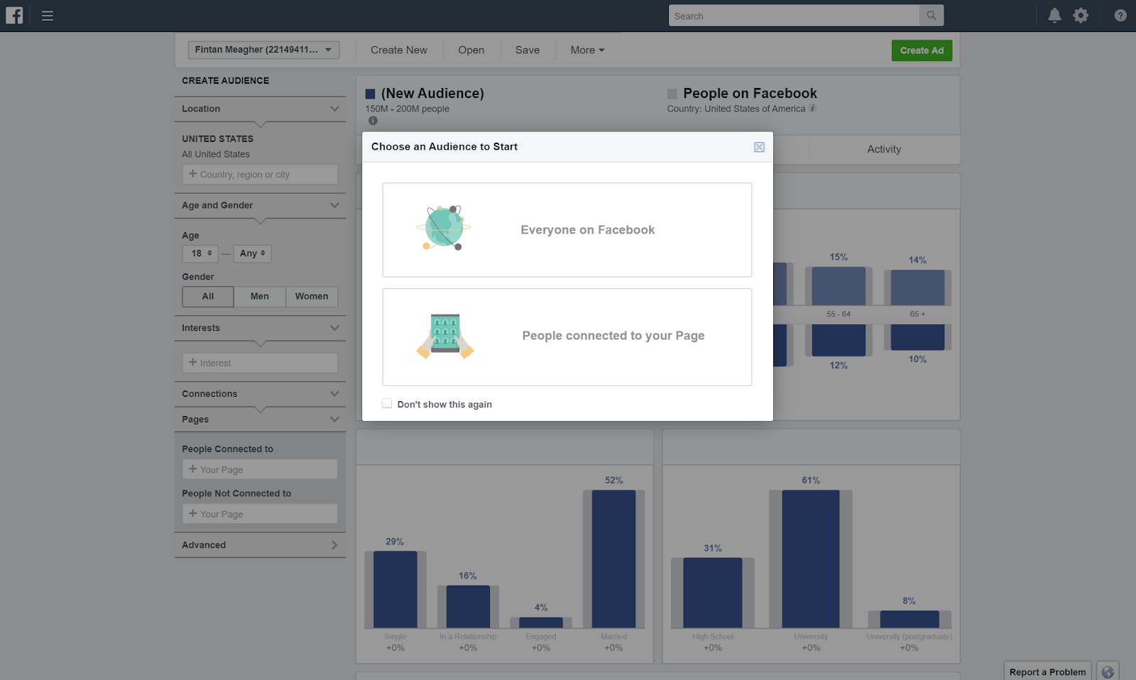You can find your audience insights tool in your ads manager. Open it, and you’ll see this screen: