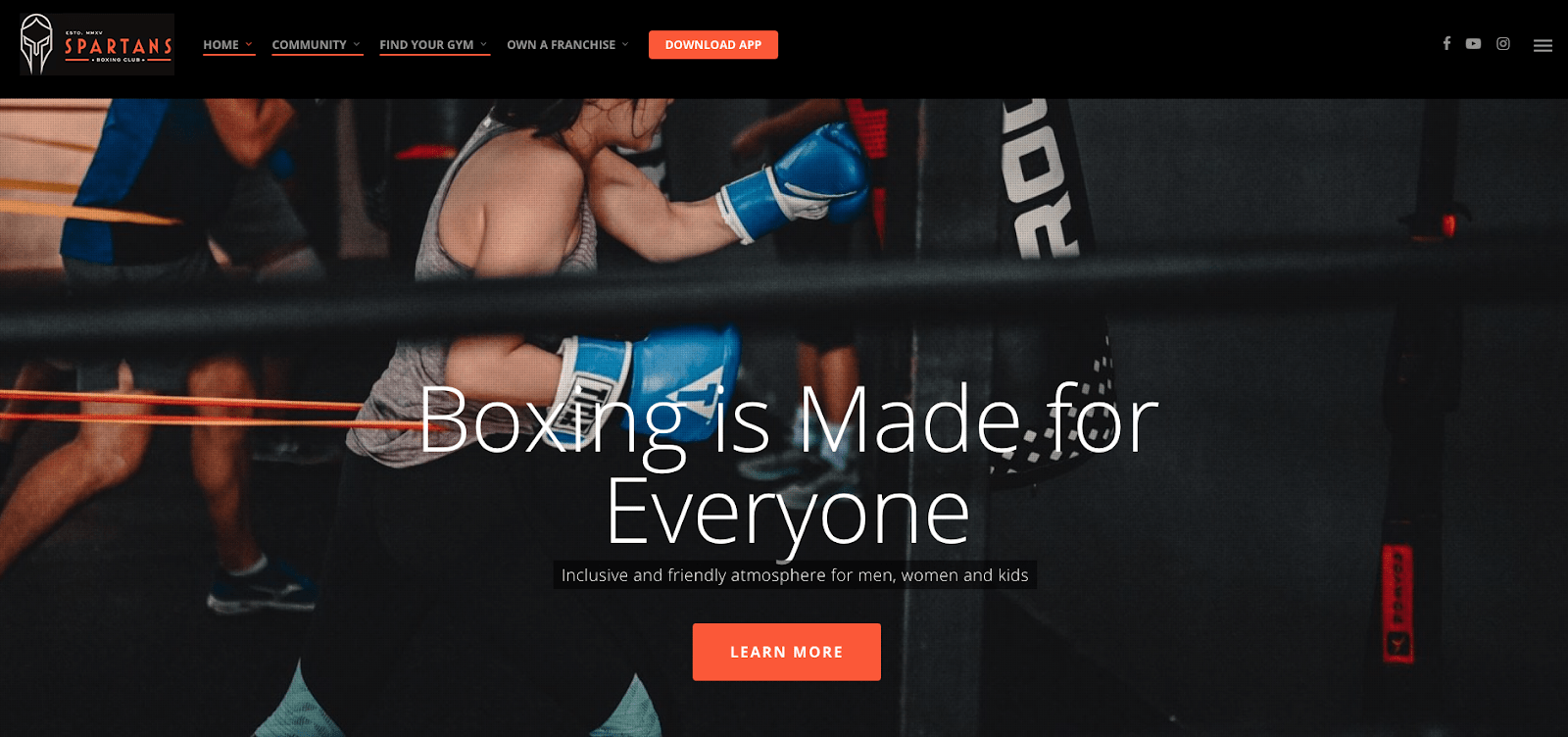 Take a look at the example below. This is the homepage for Spartans Boxing Club, a boxing franchise currently based in Singapore: