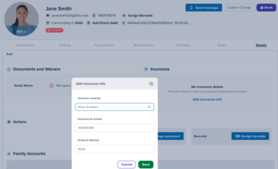 - Capture Client’s Insurance Details: now you can easily input and store your client’s insurance information directly on the client profile.