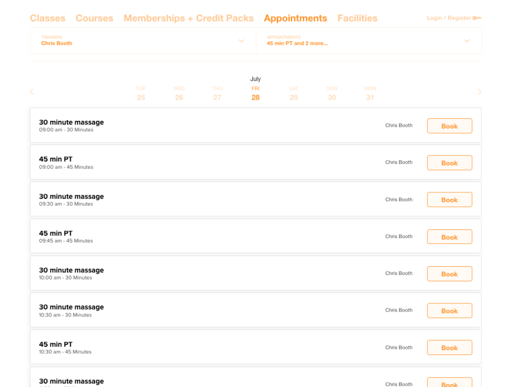 - Filter by one or multiple trainers, one or multiple appointments, or a combination of appointment & trainer