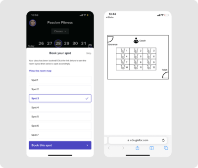 - Room map: Upload your room map and provide members with a visual layout of your studio, making their spot selection process more intuitive.