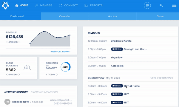 Glofox Insights is a bi-weekly email report that provides you with actionable insights from the data within your Glofox dashboard to better understand your business. See how your members, revenue, bookings, and attendance have trended throughout the year and monitor the impact the crisis has had on your business while tracking your recovery.