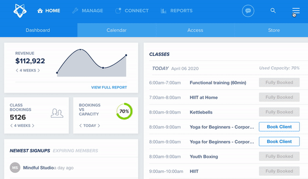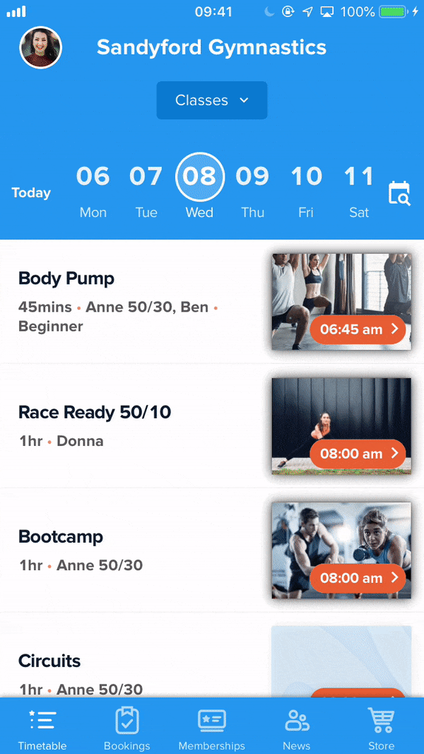 We have reduced the number of steps for members to book a class from five clicks to two. You can now select a class from the schedule and immediately book in. We have tested this with some end-users and it takes 33% less time to book into a class.