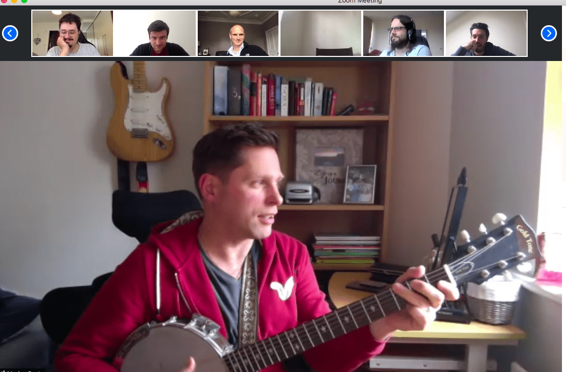 It’s not possible to see each other in person at the moment, so face-to-face video calls are essential for building and maintaining relationships. We have daily stand-ups, one-to-ones, and weekly company all-hands meetings. These meetings are generally for sharing company and team updates, shoutouts, celebrating work anniversaries, giving everyone a chance to see each other, and sometimes for performances. Last week’s Friday all-hands featured a serenade from our SMB Customer Success Manager Marko…