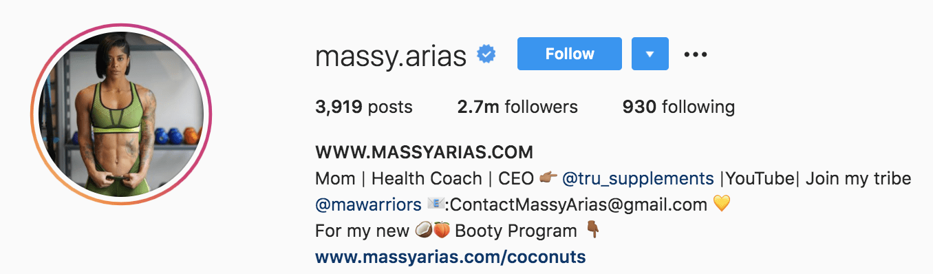 Massy Arias is a health coach and CEO of Tru Supplements. The fitness trainer is based in Los Angeles and has gained millions of followers with her short snappy workout videos. She combines different styles of home workouts like cardio and yoga into her workout routines. On her Instagram page, you’ll find before and after shots of her followers as well as a glimpse into her life as a proud mother.
