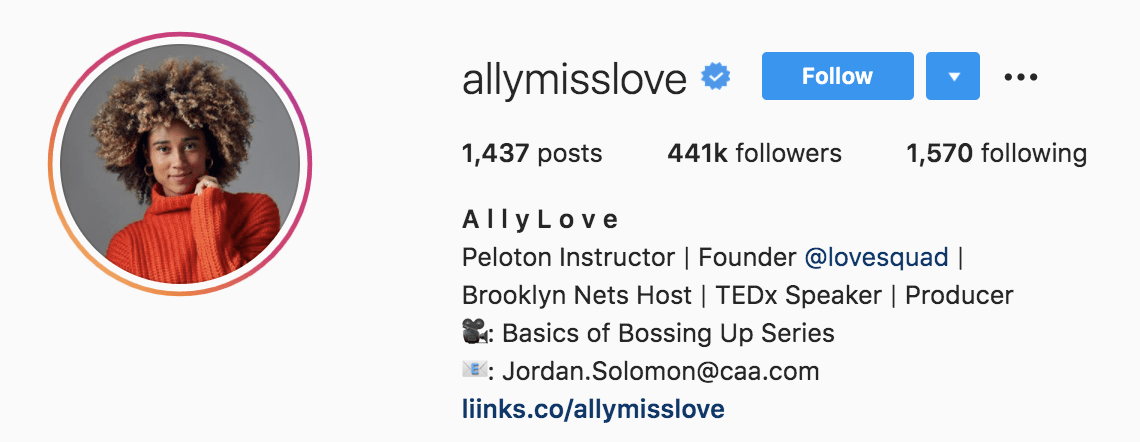 Ally is a Peloton instructor, Adidas ambassador, and founder of Love Squad, a community empowering women to release their inner boss. The certified health coach uses her platform to encourage others to stay active and be positive.