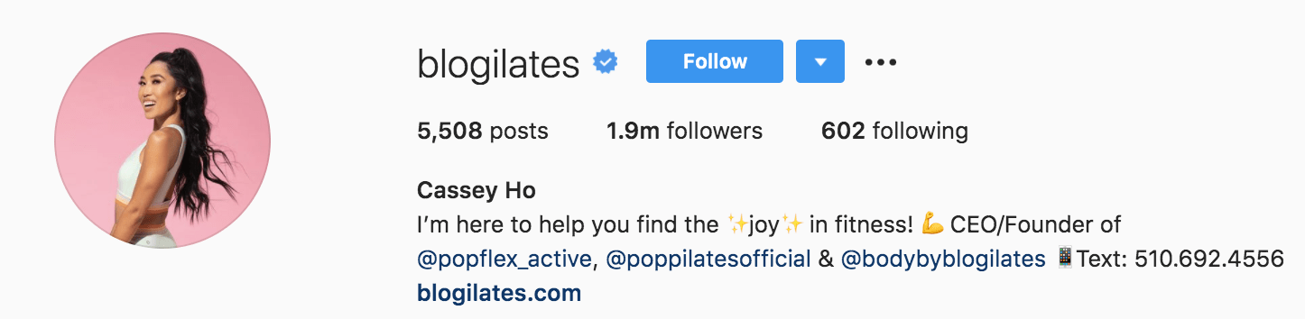 Cassey Ho, aka Blogilates, is the founder of Pop Pilates and product line PopFlex Active. Cassey has over ten years of experience as a YouTuber and fitness influencer. Her content usually includes rigorous Bootcamp-style workout videos, Pilates, and behind the scenes, look at her life.