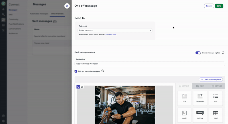 We wanted to make it possible for ABC Glofox customers to send highly effective one-off emails without disrupting their workflows or requiring them to purchase an additional tool. Which is why we’ve recently added everything your fitness business needs to send one off emails directly from ABC Glofox. We’ve included: