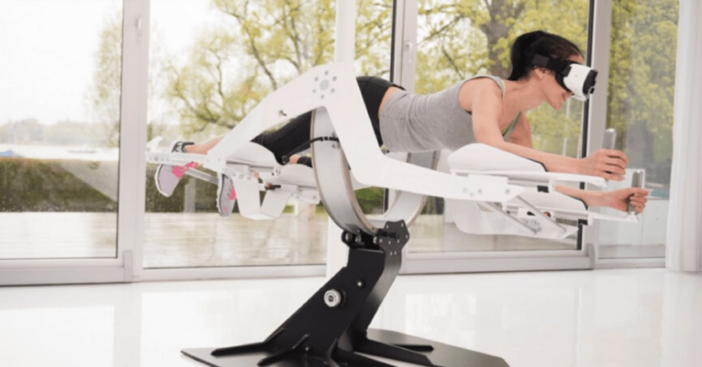 Founded in 2015, Icaros is compatible with both Oculus Rift and Samsung Gear VR. The machine itself allows users to slide their legs forward and backward and roll from side to side. Apart from getting a workout, the system also improves reflexes, balance, and concentration. There are several games available for the system, including FLIGHT, GRAVITY, DEEP, and AIM. All of these take place in various environments on land, sea, and air.