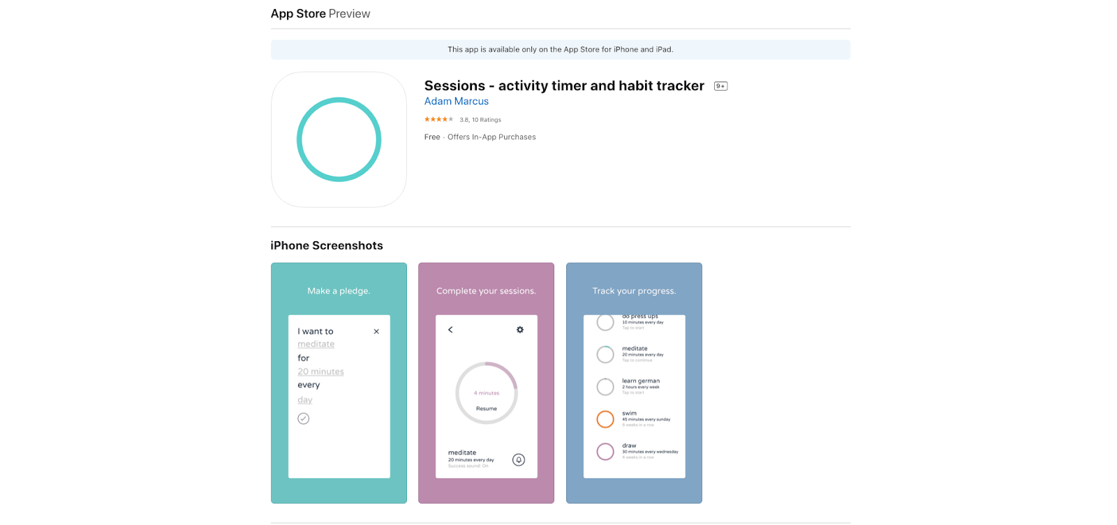 Sessions is an activity timer and habit tracking app, and it’s a great tool if you want to add a little more structure to your life. From meditating for 20 minutes a day to calling a friend, whatever your daily goals are, Sessions helps you manage them. Reminders can be sent daily or weekly or even assigned to a specific day. Say, for example, that you want to do at least 2 hours a week of yoga. You can open the app and start the timer each time you practice, and Sessions will track the goal and report back on how long you maintain your streak. The app is currently available on iOs through an iPad and iPhone app. Set yourself some goals and turn them into healthy habits!